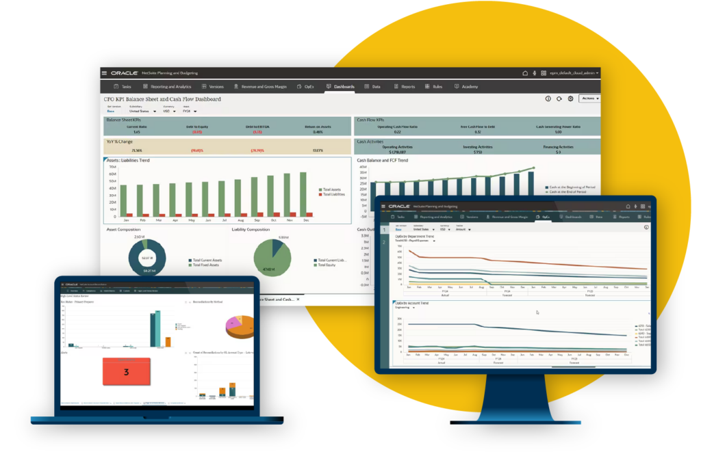 Aufbauend auf der bewährten Oracle Fusion Cloud Technologie integriert sich EPM nahtlos mit der ERP-Plattformen, wie z.B. Oracle und Oracle Netsuite. Dadurch sind Finanzdaten stets aktuell, konsistent und in Echtzeit verfügbar und bilden Ihre Grundlage für präzisere Planung, Reporting und Performance-Steuerung.