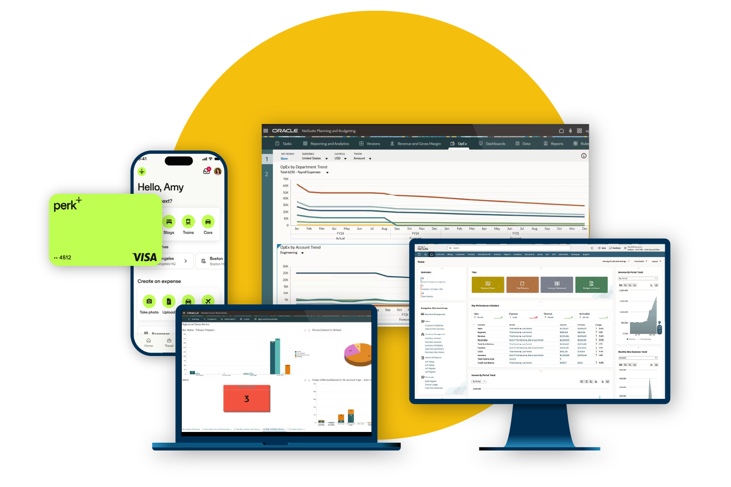 NetSuite offers flexible integration options to existing systems such as SAP, Microsoft Dynamics, HubSpot, Workday, Perk as well as to banks, payment providers and specialized finance tools.
